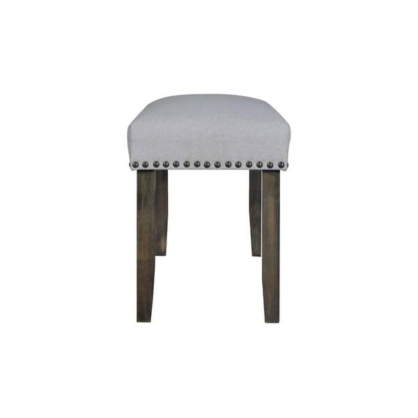 42.5 in. Gray and Brown Backless Bedroom Bench with Nailhead Accent and Tapered Legs