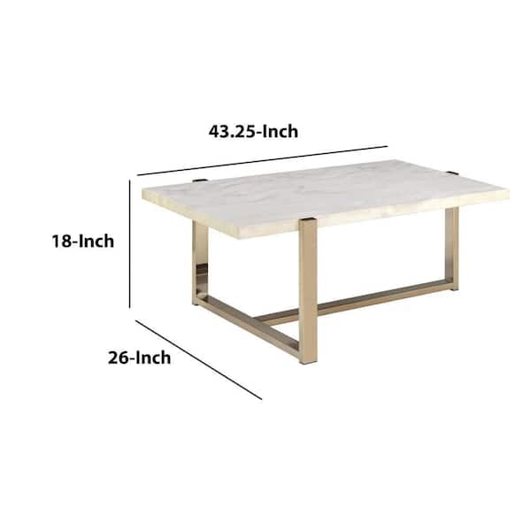 44 in. White/Gold Large Rectangle Marble Coffee Table with Faux Marble Top