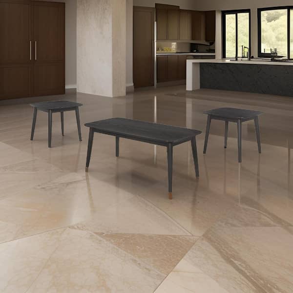 47 in. Black Rectangle Wood Top Coffee Table with End Table Set
