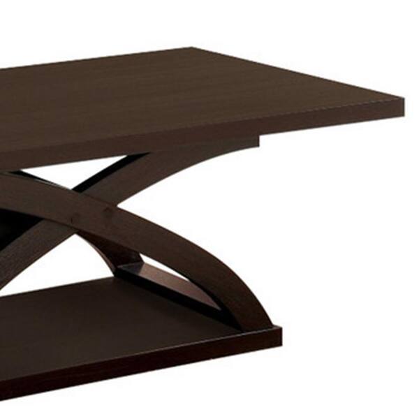 48 in. Brown Large Rectangle Wood Coffee Table with X-Shape Base