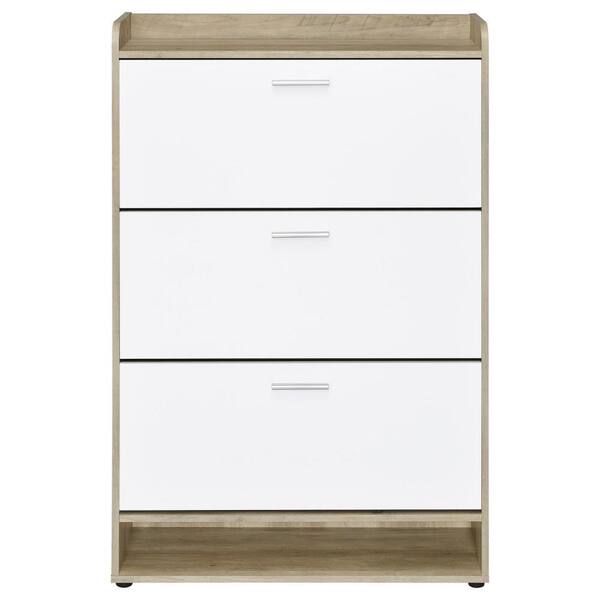 49.75 in. H x 31.5 in. W White, Brown and Silver Wood Shoe Storage Cabinet