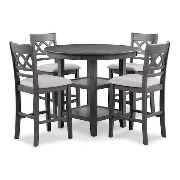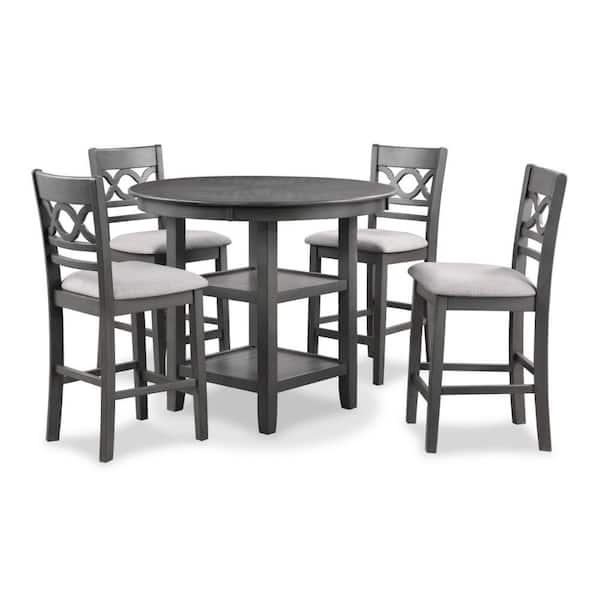 5-Piece Round Gray and White Wood Top Counter Dining Table and Chair Set (Seats 4)