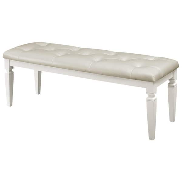 54.25 in. White Backless Bedroom Bench with Button Tufted Seat and Turned Legs
