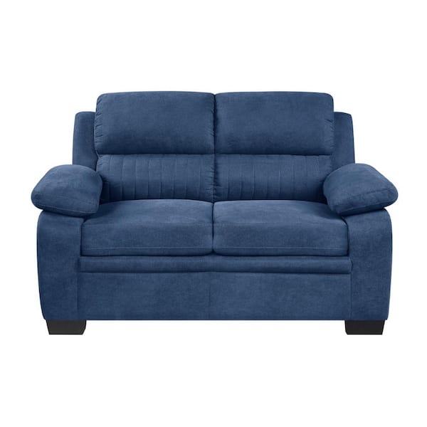 58 in. Blue Solid Print Polyester 2-Seater Loveseat with Tufted Back