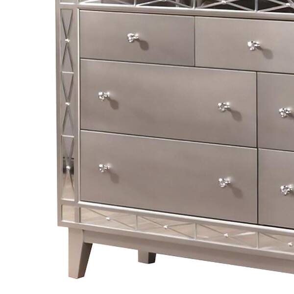 58 in. Silver 7-Drawer Wooden Dresser Without Mirror