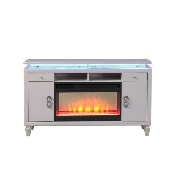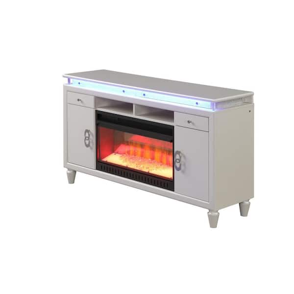 59.57 in. White Wood TV Stand Fits TVs 70 in. with 2 Drawers