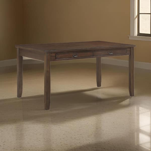 60 in. Brown and Pewter Gray Wood 4 Legs Dining Table Seating 6