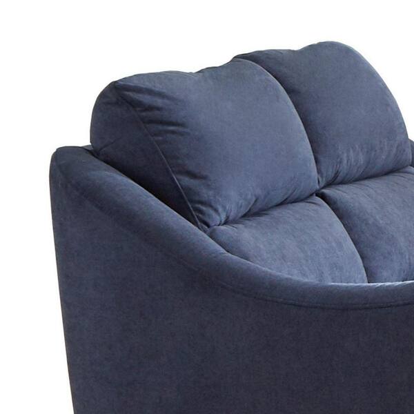63.5 in. Blue and Brown Solid Polyester Woven Fabric 2-Seater Loveseat with Channel Tufted Back and Sloped Arms