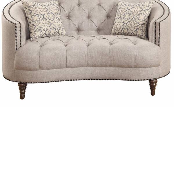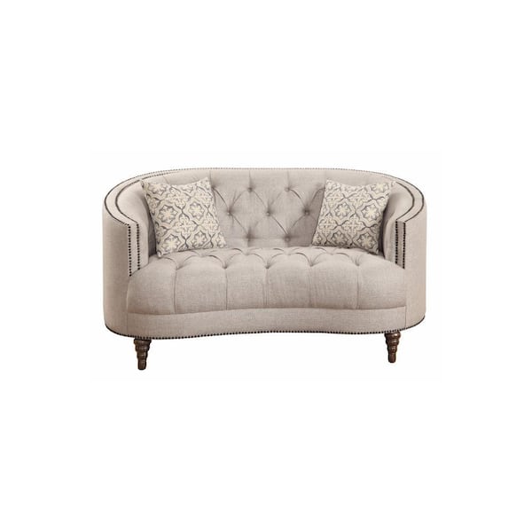 63 in. Beige Solid Print Fabric 2-Seater Loveseat with Wooden Frame