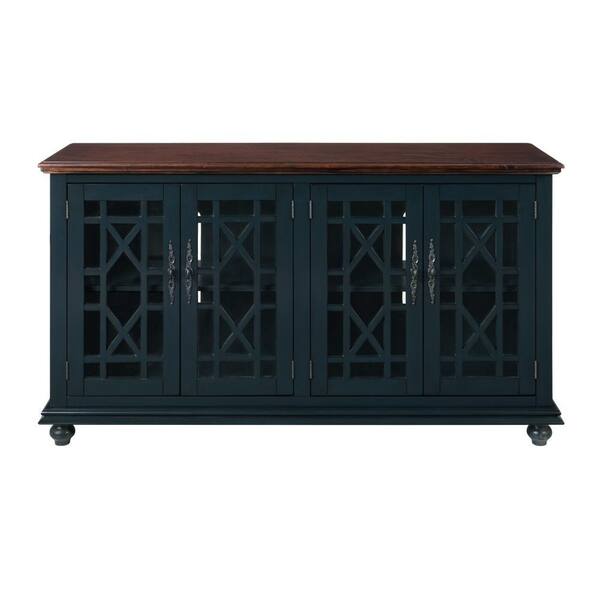 63 in. Brown and Blue Wood TV Stand Fits TVs up to 55 in. with Turned Leg