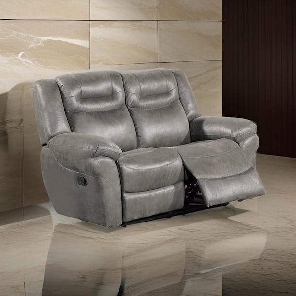 65 in. Pillow Top Arm Fabric Rectangle Recliner Sofa in Gray