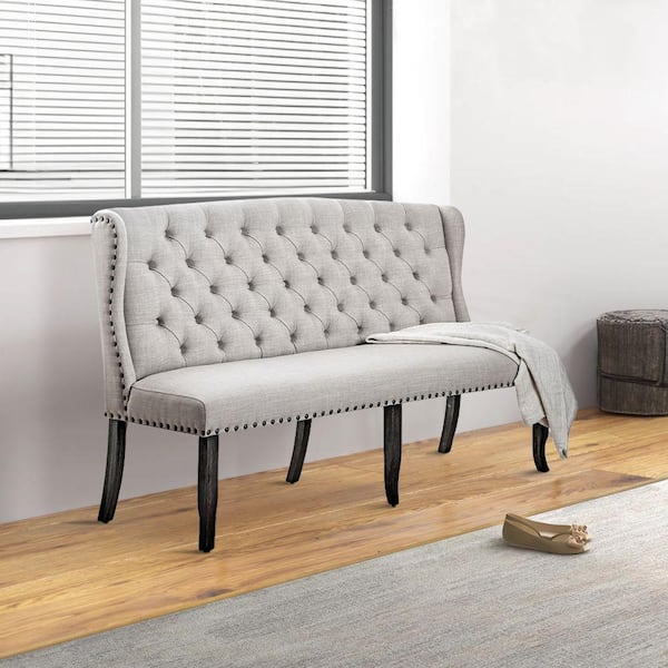 66 in. Antique Black and Gray High Back Bedroom Bench with tufted back