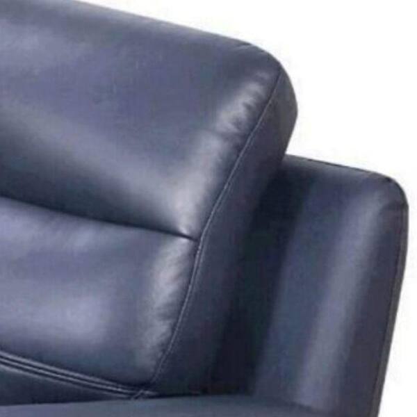 67 in. Blue Solid Leather 2-Seater Loveseat with Channel Tufted