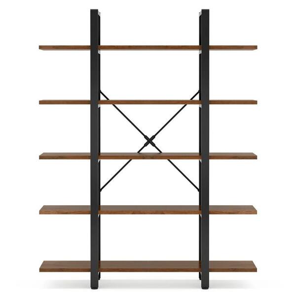 70.07 in. Tall Brown and Black Wood 5-Shelf Standard Bookcase