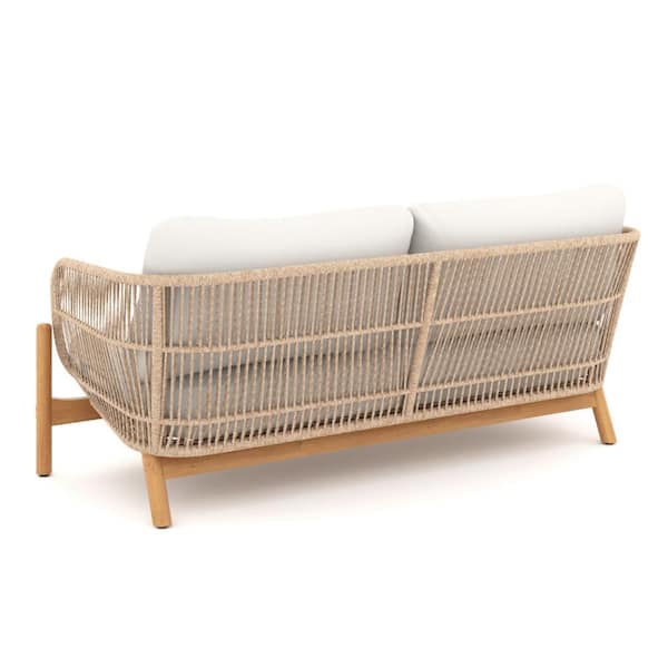70.16 in. White and Brown Solid Polyester 2-Seater Loveseat with Wooden Frame