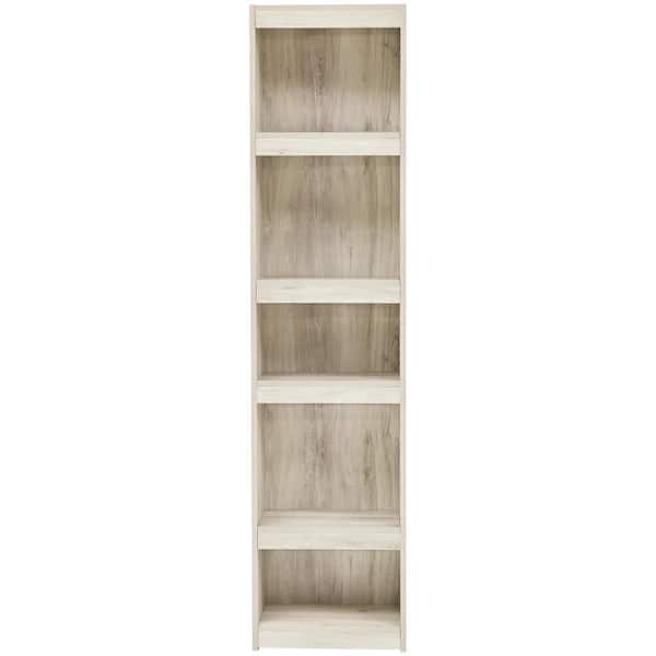 71.97 in. Tall Washed White Wooden 5-Shelf Standard Bookcase with Adjustable Shelves