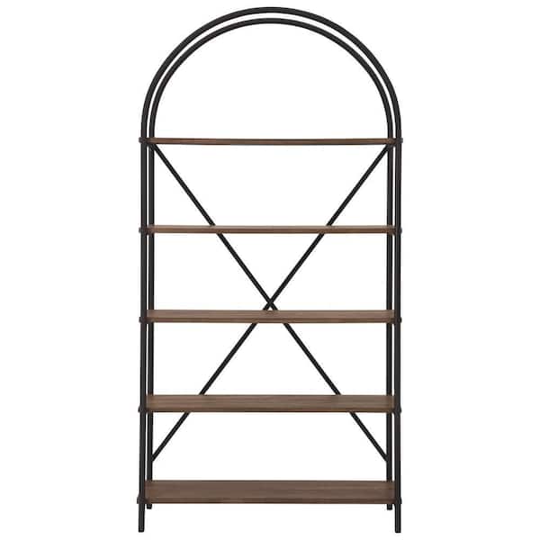 72.16 in. Tall Black and Brown Wood 5-Shelf Bookcase with 5 Open Shelves