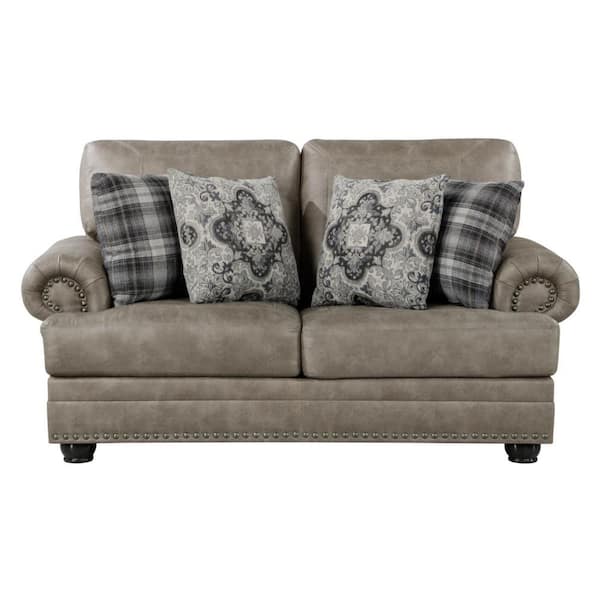 • Taupe brown microfiber upholstery with nailhead trim