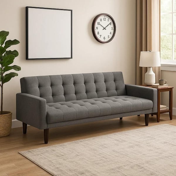73.5 in. Gray and Brown Linen Blend Sleeper Size Sofa Bed
