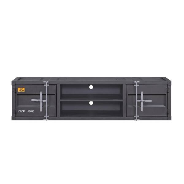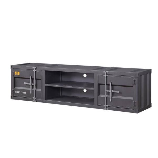 73 in. Gray Metal TV Stand Fits TVs up to 65 in. with 2-Open Shelves