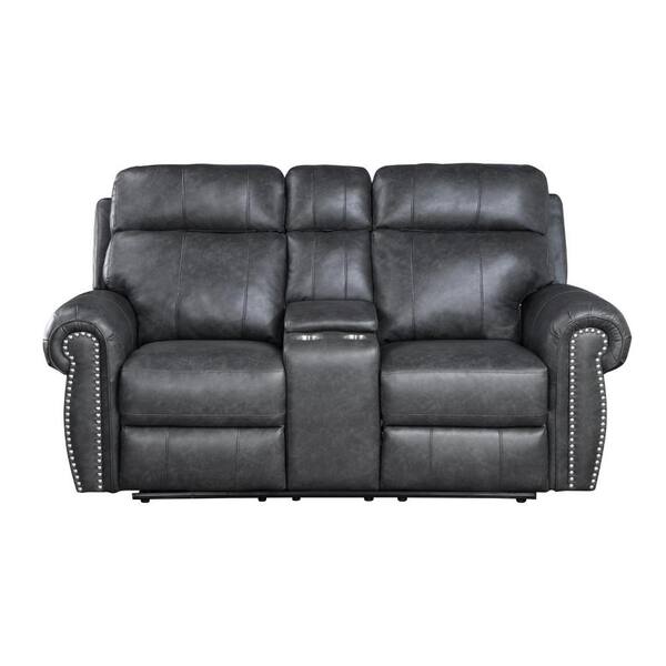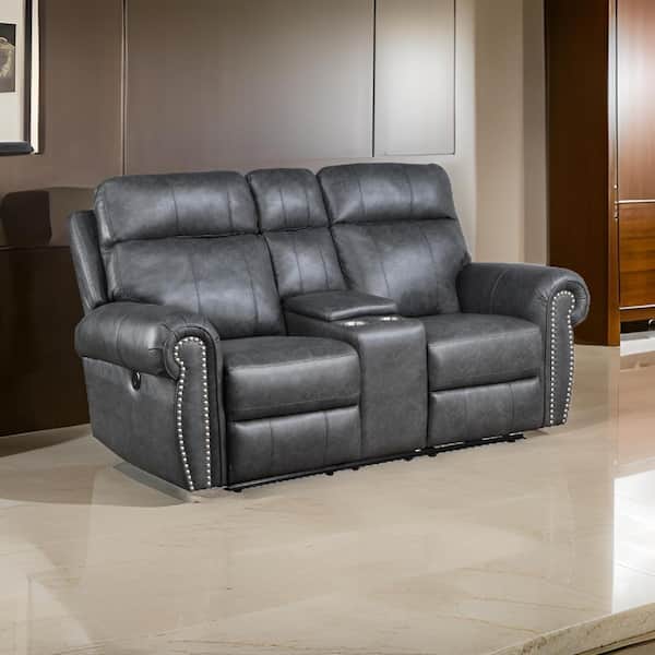 74.5 in. Round Arm Faux Leather Rectangle Loveseat Recliner Sofa in Gray