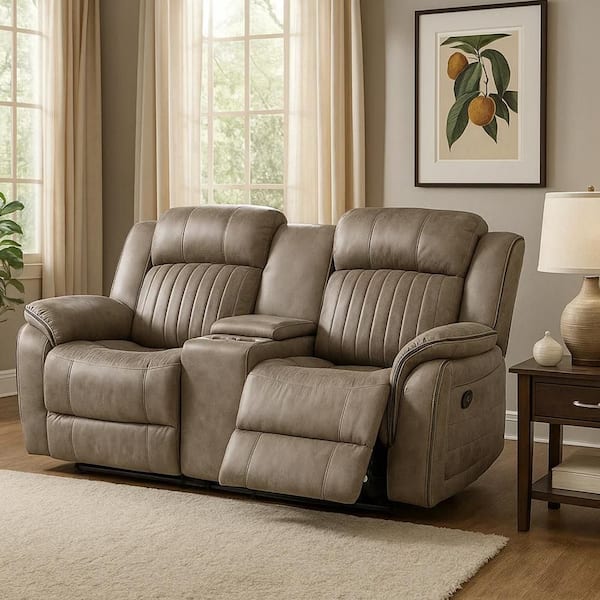 74 in. Pillow Top Arm Microfiber Rectangle Loveseat Recliner Sofa in Sandy Brown
