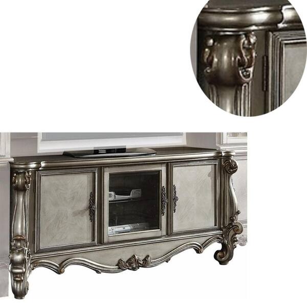 74 in. Silver Wood TV Stand Fits TVs up to 72 in. with 6 Shelves