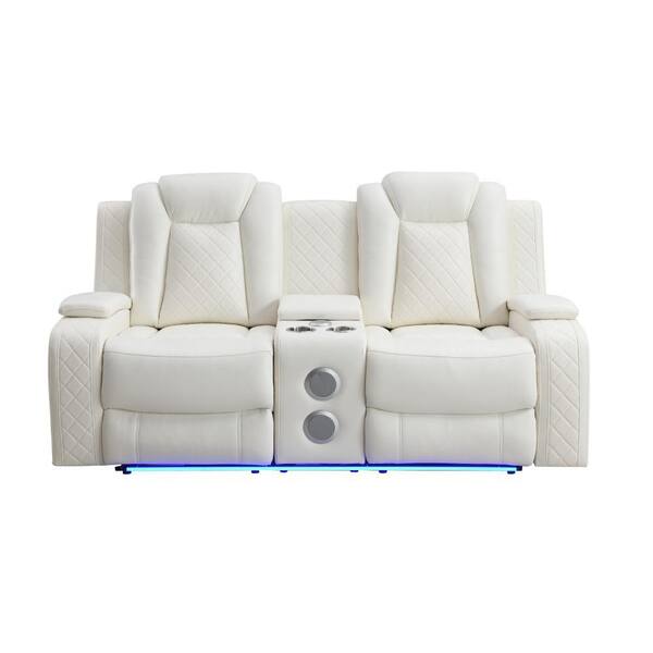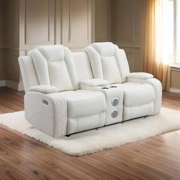 75.25 in. Pillow Top Arm Fabric Rectangle Manual Loveseat White USB Recliner Sofa in White