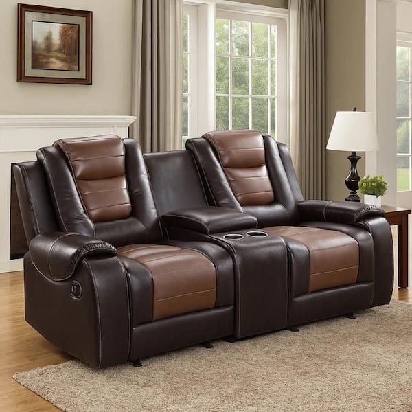 76 in. Pillow Top Arm Faux Leather Rectangle Recliner Loveseat Sofa in Brown