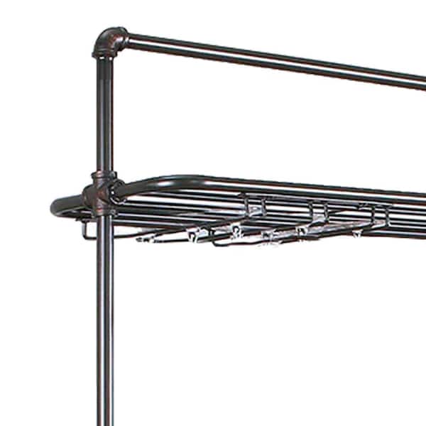 77 in. Black, Brown and Copper Rectangle Metal Wooden Bar Table with Hanging Rack