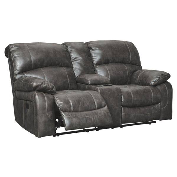 77 in. Gray Solid Polyester 2-Seater Power Recliner Loveseat with Console