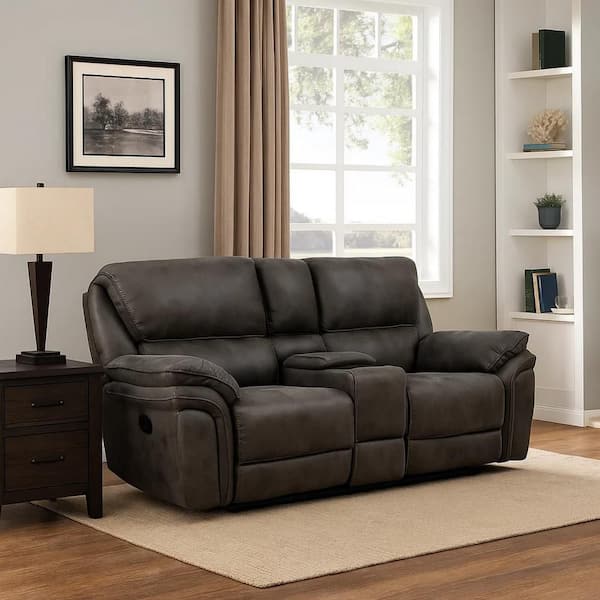 79.5 in. Pillow Top Arm Fabric Rectangle Dual Recliner Loveseat Sofa in Gray