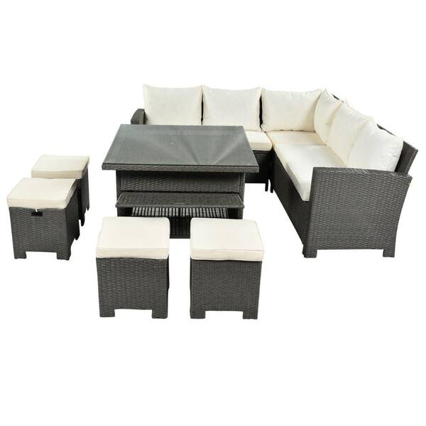 8 -Piece Beige Brown Rattan Steel Frame Wicker Outdoor Patio Sectional Sofa Set with Cushions