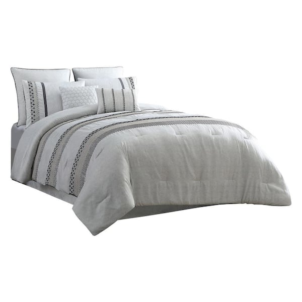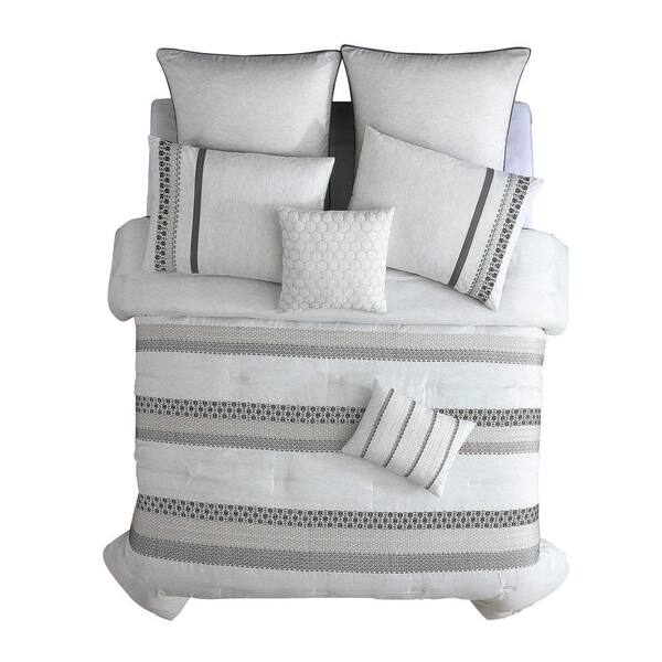 8-Piece White and Beige Solid Print Microfiber Queen Comforter Set