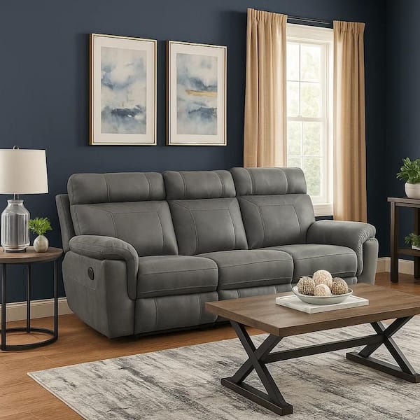 84.5 in. Pillow Top Arm Microfiber Rectangle Padded Rocking Seats Sofa in Gray