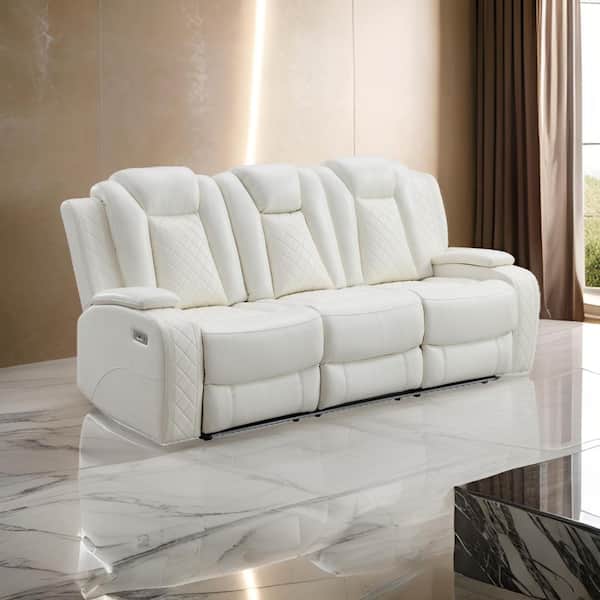 84.63 in. Flared Arm Fabric Rectangle Manual Recliner Sofa in White