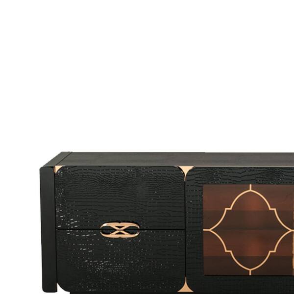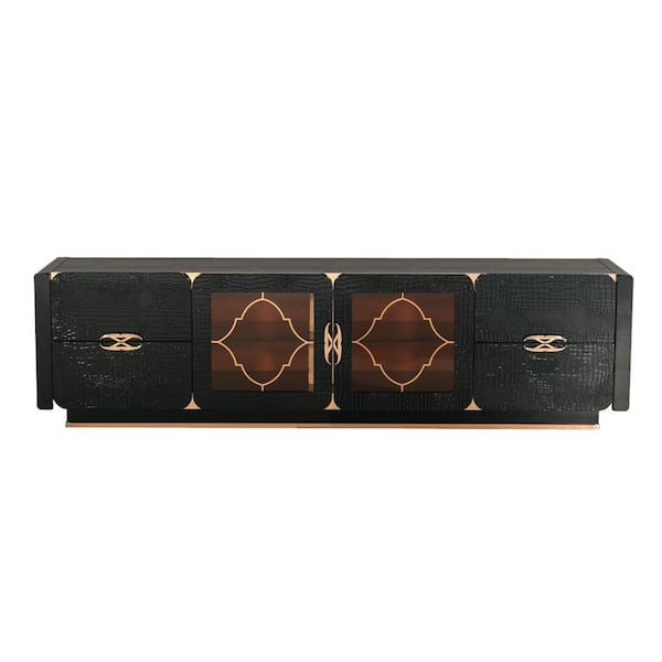 85 in. Black Wood TV Stand Fits TVs up to 85 in. with 2-Cabinets and Textured Details