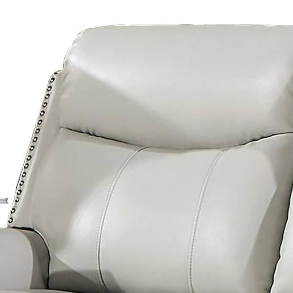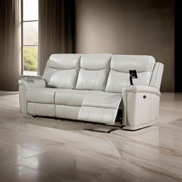 87.25 in. Flared Arm Faux Leather Rectangle Power Recliner Sofa in Light Gray