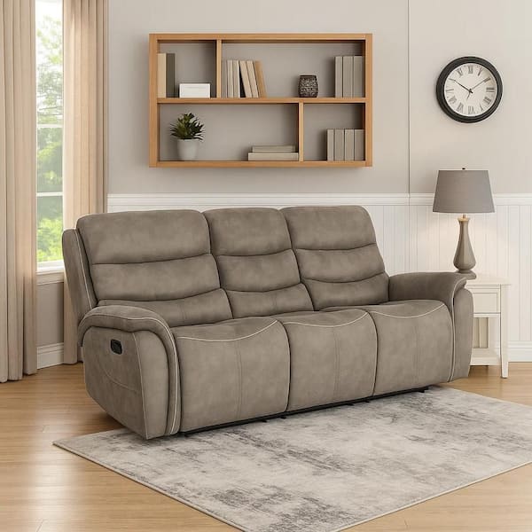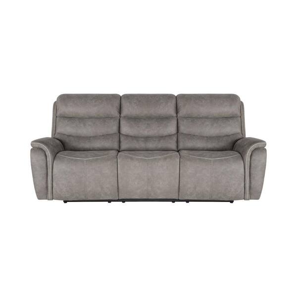 90.6 in. Pillow Top Arm Faux Leather Rectangle Cushioned Seat Recliner Sofa in Gray