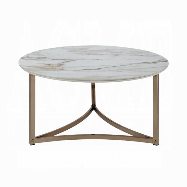 Acor 35 in. White and Gold Round Stone Coffee Table with Frame