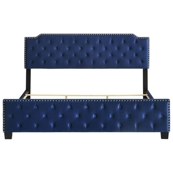 Agapi Blue Wood Frame King Size Platform Bed with Button Tufted