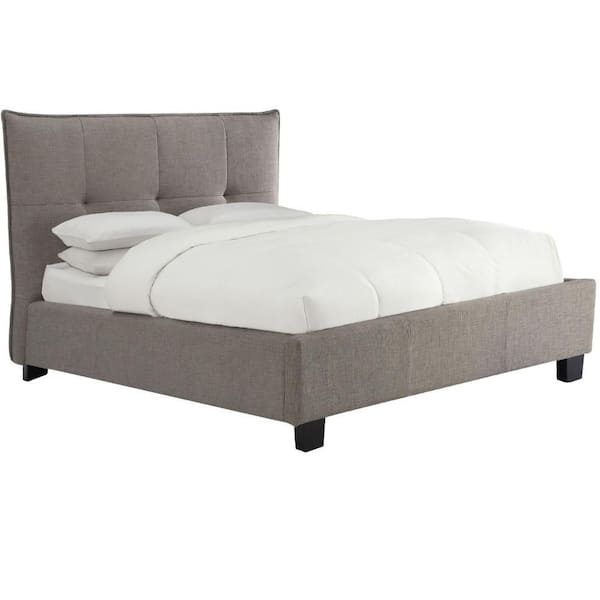 Amy Gray Wood Frame Queen Size Panel Bed with Button Tufted