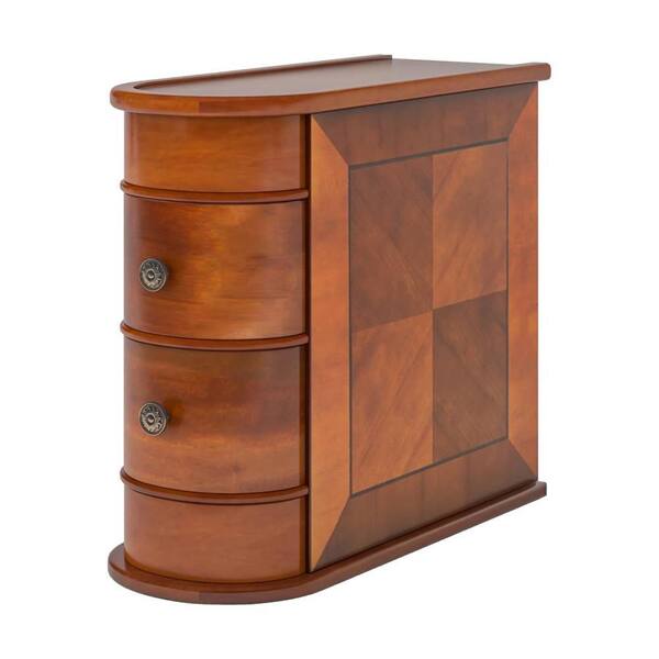 Arc 10.8 in. Walnut Brown and Silver Oval Wooden End Table with 2-Drawers