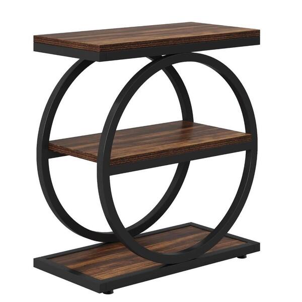 Ari 23.62 in. Brown and Black Rectangle Wooden End Table with 3-Shelves