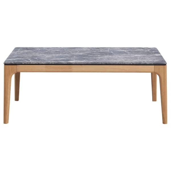 Aris 27.5 in. Gray and Brown Rectangle Faux Marble Coffee Table with 4 Leg