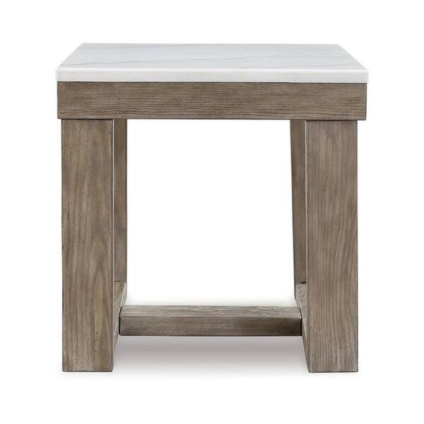 Aska 24 in. Taupe Gray and Ivory Square Wooden End Table with Block Profile