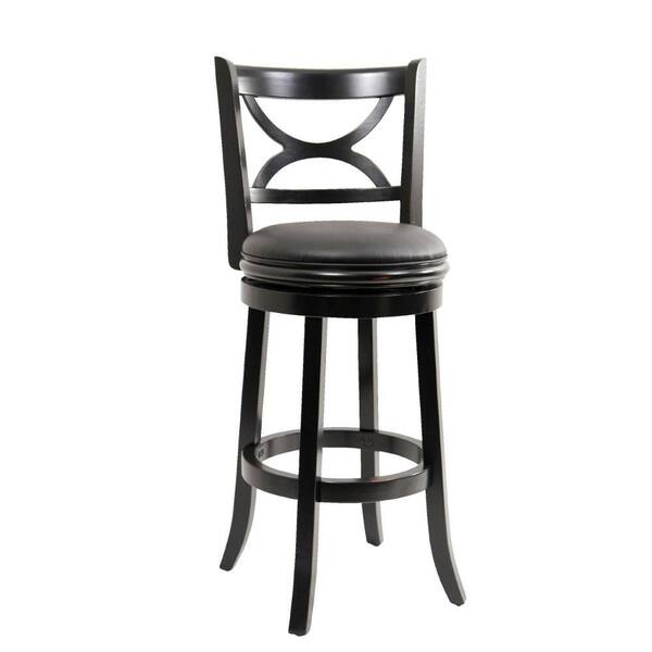 Ava 43.5 in. Midnight Black High Back Solid Wood Swivel Bar Stool with Rich Faux Leather Seat