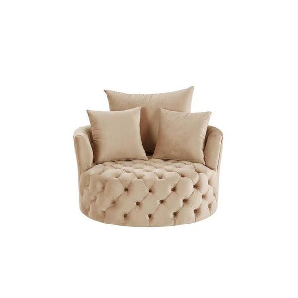 Beige Fabric Accent Chair with Curved Design and Button Tufting