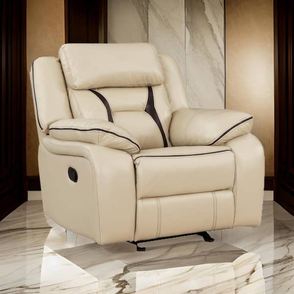 Beige Faux Leather Manual Recliner with Solid Wood and Metal