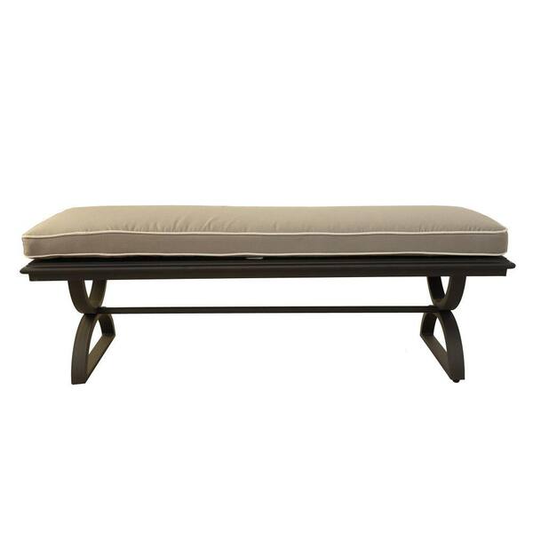 Beige Polyester Fiber Patio Bench with Cushion and Crossed Legs